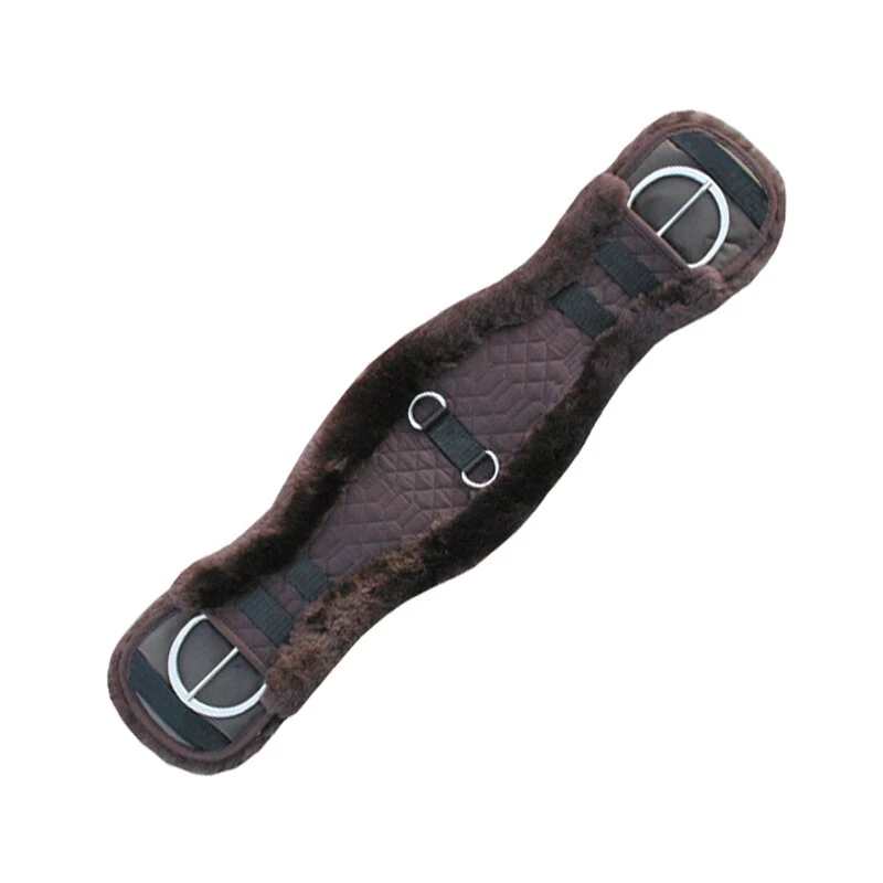 Kuschliger und super weichert echt Lammfell Bauchgurt. Der Sattelgurt aus Lammfell ist anatomisch geformt und sorgt so für einen super komfortablen Sitz am Pferd. Die anatomische Form eignet sich vor allem ganz hervorragend für Pferde mit einer ausgeprägten Gurtlage. Auch Pferde, welche sehr empfindlich in der Gurtlage sind profitieren von dem anatomischen Lammfell-Sattelgurt. Durch die breite Auflagefläche des Western-Sattelgurts wird der Druck optimal verteilt und beugt so Empfindlichkeiten und Abwehrreaktionen in der Sattelgurtlage vor. Lammfell-Sattelgurte für Westernsättel bietet von Natur aus einen sehr guten und hohen Tragekomfort für das Pferd. Der Westernsattelgurt aus Lammfell verfügt über zwei D Ringe zum befestigen von Vorderzeug, Martingal etc. Der Lammfellsattelgurt besitzt die positiven Eigenschaften von Lammfell: atmungsaktiv, temperaturregulierend und antibakteriell. Damit diese Eigenschaften des Lammfells nicht verloren gehen, empfehlen wir den Gurt regelmäßig mit speziellem Lammfellwaschmittel zu reinigen und ihm nach dem Reiten genug Zeit zu geben um zu trocknen, so verhindert man, dass der Gurt verklebt und sich durch das Ammoniak im Schweiß des Pferdes zersetzt. Ebenfalls sollte man den Western-Lammfell-Sattelgurt wenn er getrocknet ist ausbürsten. Der Sattelgurt für empfindliche Pferde wird von Schnallenende zu Schnallende gemessen.