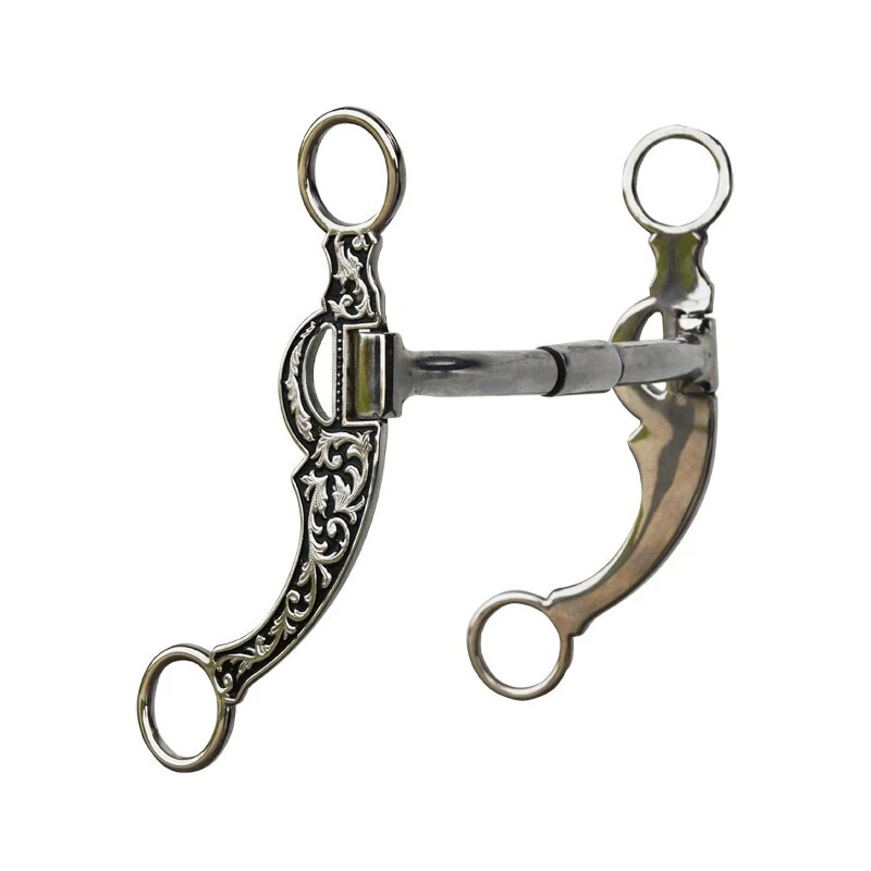 Wunderschönes Billy Allen Bit mit Shanks– Perfekt für die Show! Billy Allen Gebiss mit Hebelwirkung mit gravierten Shanks. Dieses Gebiss wird von einem zauberhaften floralem Muster an den Shanks dekoriert. Die silbernen Shanks sind mit schwarz in Kontrast gestellt, was das Bit zu einem absoluten Eyecatcher macht! Das Westernbit eignet sich hervorragend für das tägliche Training, als auch fürs Turnier. Auf der Innenseite des Mundstückes sind Kupfereinlagen eingearbeitet, was von den meisten Pferden sehr gerne angenommen wird.