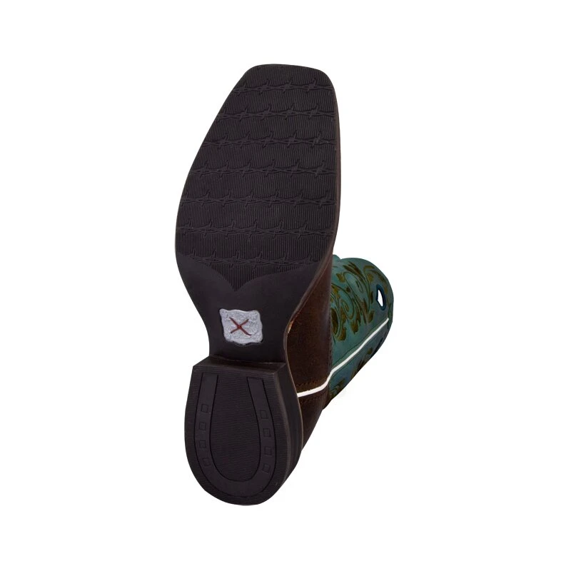 Bei Twisted X Boots werden die Stiefel handgefertigt, rahmengenäht und es wird nur bestens Rindsleder für die Herstellung verwendet. Der Women´s Ruff Stock besitzt die sqare toe Form und eine strapazierbare Laufsohle.