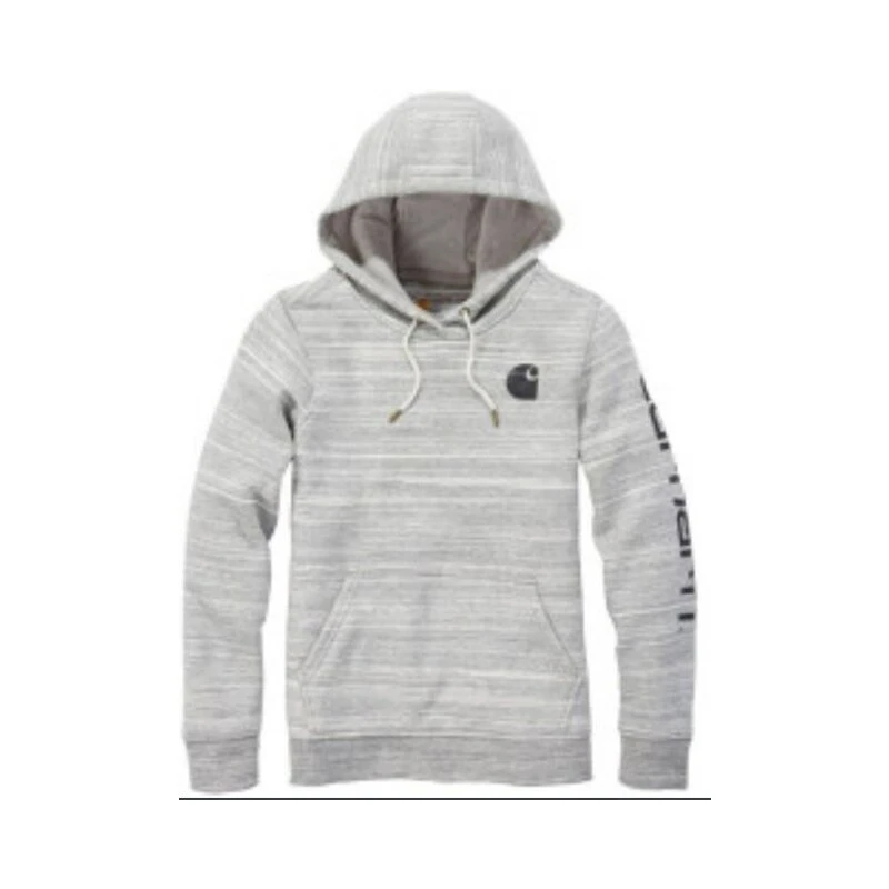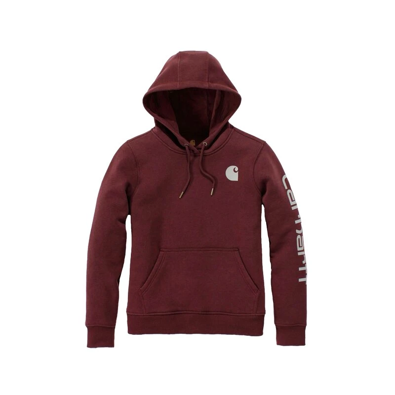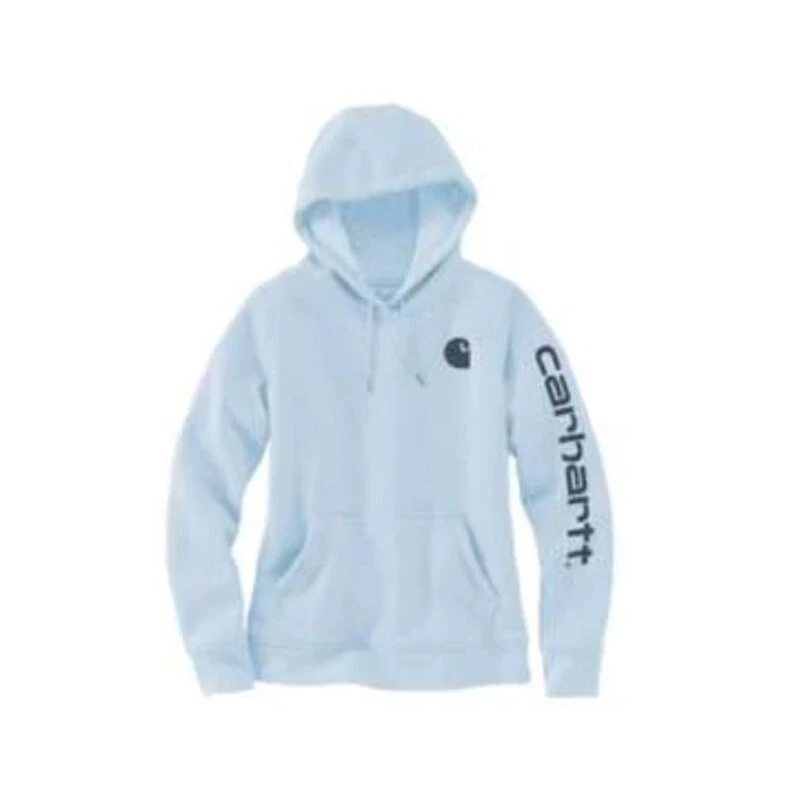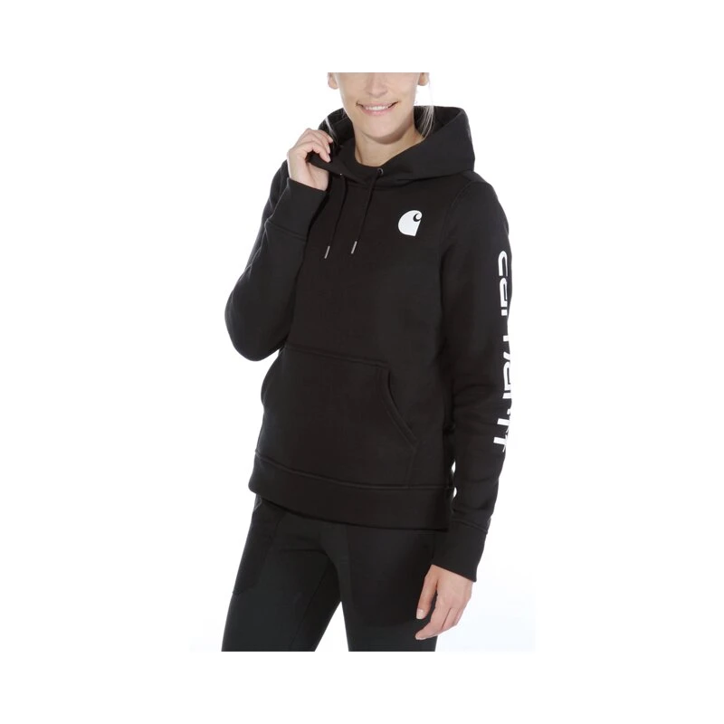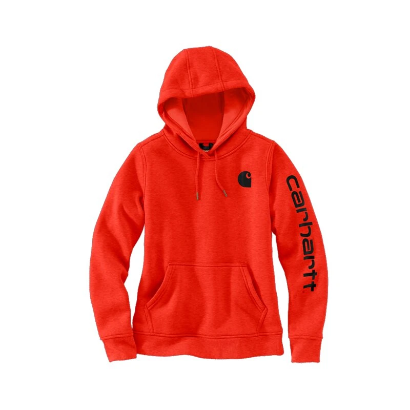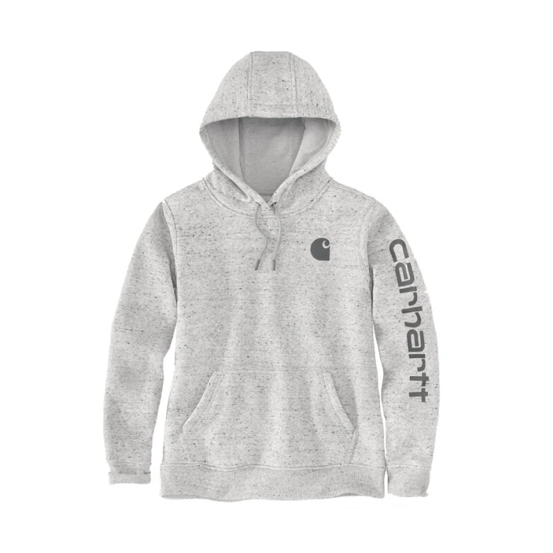 Kapuzenpullover für Damen aus Clarksburg- Fleece von der beliebten Marke Carhartt. Der hochwertige Damen Hoodie hat eine dreiteilige Kapuze mit Kordelzug angebracht. Das Carhartt Sleeve Logo Hooded Sweatshirt ist ein absolut lässiger Damen Hoodie, den man bei jeder Gelegenheit tragen kann! Die zwei im Frontbereich angebrachten Handwärmer Taschen haben zusätzlich noch eine verdeckte Medientasche und bieten etwas Platz für das Handy etc. Das coole Carhartt Sleeve Graphic Sweatshirt hat elastische Rippstockbündchen an den Ärmeln und am Bund, somit hat der Hoodie von Carhartt einen angenehmen Schnitt und trotzdem eine tolle Passform! Auf dem linken Ärmel des Carhartt Sleeve Graphic Sweatshirt ist das Carhartt Logo aufgedruckt und auf der Brust das Carhartt C!