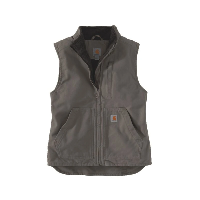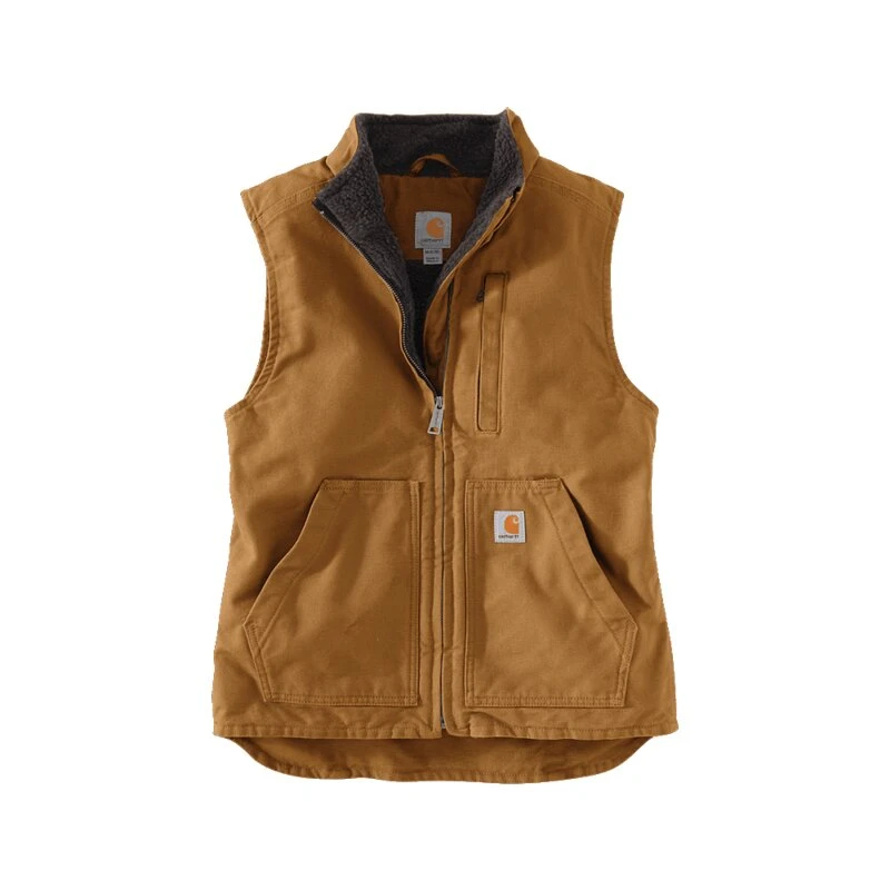 Ärmellose Damenjacke Carhartt Sherpa Lined Mock Neck Vest by Carhartt. Die Damenweste von Carhartt verfügt über zwei tief sitzende Fronttaschen, in der rechten befindet sich ein Stiftehalter. Noch mehr Stauraum wird durch die zwei Innentaschen, bei denen eine mit Klett und die andere mit Reißverschluss ausgestattet sind, geboten. Die Carhartt Damenweste hat einen verlängerten Saum am Rücken- Eine tolle, bequeme Weste von Carhartt, die durch ihre mega bequeme Passform sich bestens als Reitweste eignet.