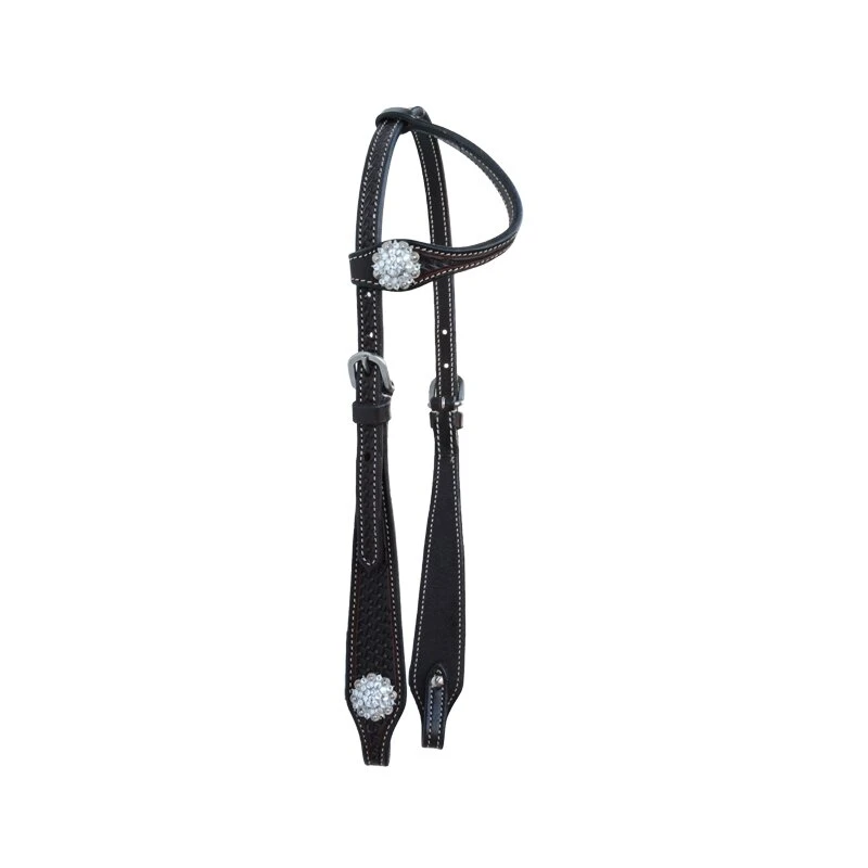 Eine sehr stilvolle Einohrtrense mit basketpunzierten Backenteile und punziertem Earloop. Die Conchas sind aufwändig mit Glitzersteinchen verziehrt! Die Einohrtrense ist sehr edel und wirkt sehr schön am Pferd.