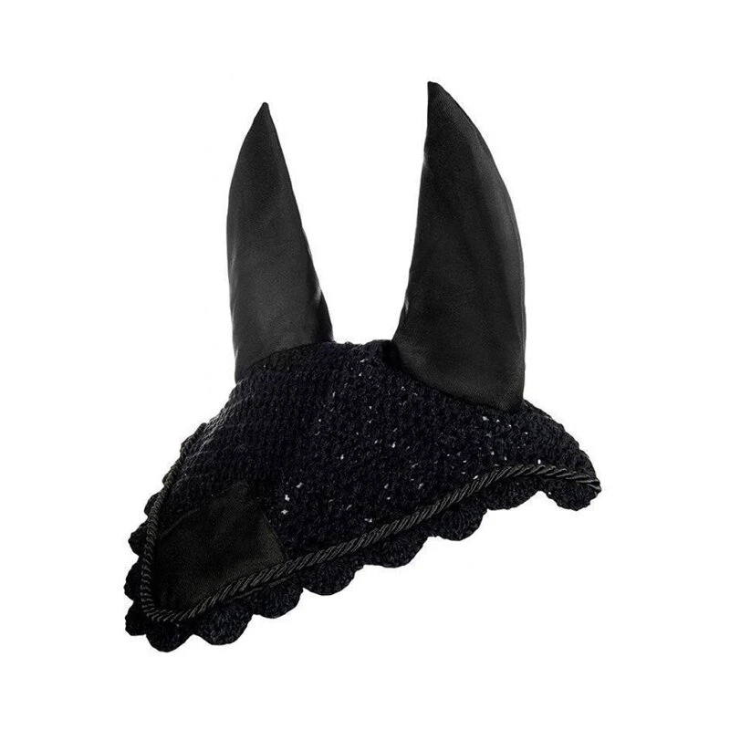 Gehäkelte Fliegenhaube um die Ohren des Pferdes während dem Training oder Ausritt vor lästigen Insekten zu schützen. Die Fliegenhaube ist von Hand gehäkelt und in der Farbe schwarz erhältlich. Die Fliegenohren sind maschinenwaschbar bei 30 Grad ( nicht schleudern) und bei Kaltluft trocknergeeignet.