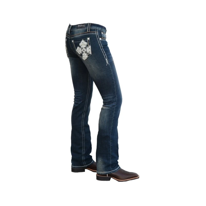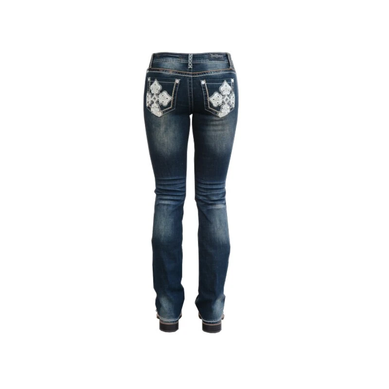 Auf der Hinterseite besitzt die Jeans eine wunderschöne Verzierung aus Strasssteinen und Ziernähten.