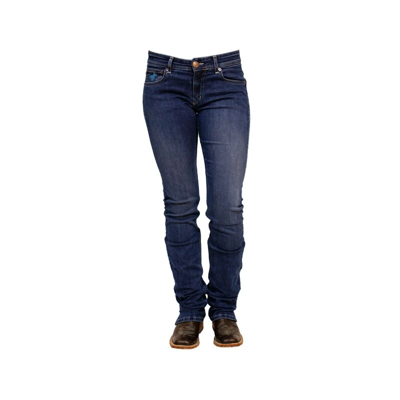 Schicke Damenjeans vom Kultlabel old sorrel western sports apparel. Die Damenjeans verfügt über einen 4%-igen Stretchanteil, welcher die Jeans zu einem super bequemen Begleiter in der Freitzeit oder im Reitsport macht. Die OSWSA Jeans ist nicht nur bequem, sie ist auch optisch einfach nur bezaubernd. Die Ladies Jeans hat an den hinteren Taschen eine schlichte, aber sehr schöne “OS” Stickerei in einem schicken blau. Die Jeans hat einen mid rise Schnitt und einen leichten Boot Cut, dadurch kann die Jeans je nach Geschmack innerhalb oder außerhalb des Cowboystiefels getragen werden.