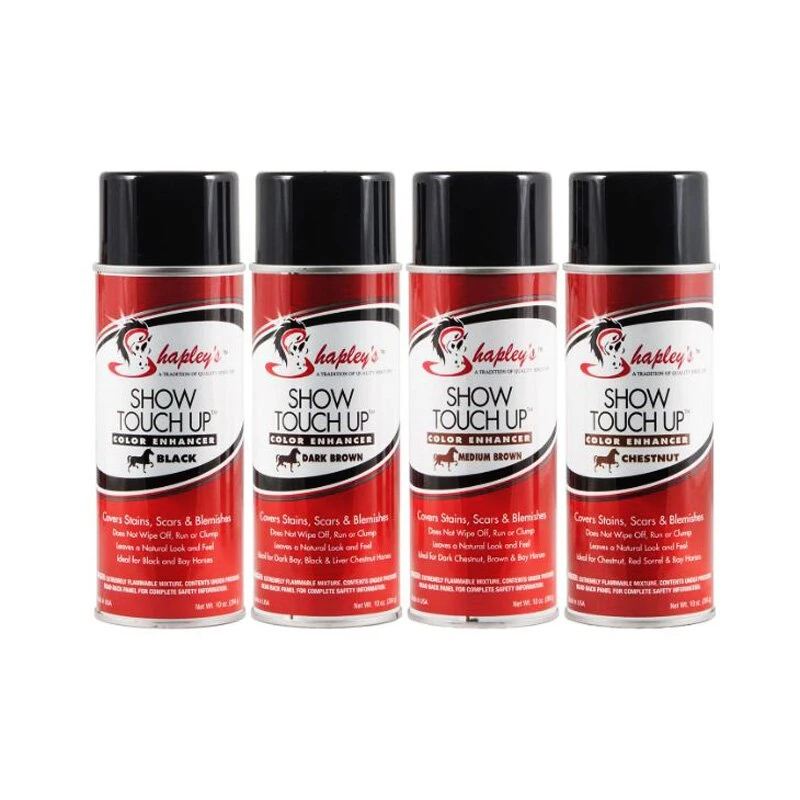 Shapleys Show Touch up ist ein perfekter Begleiter für die Show! Das Show Touch up von Shapleys ist dafür entwickelt kleine Schrammen, Narben, Flecken oder Unregelmäßigkeiten im Fell abzudecken. Das Show Touch up wurde extra für Pferde entwickelt und lässt den Schweif, wenn man es dort anwendet voller aussehen! Das Shapleys Show Touch up sieht natürlich aus und bildet keine Klumpen.