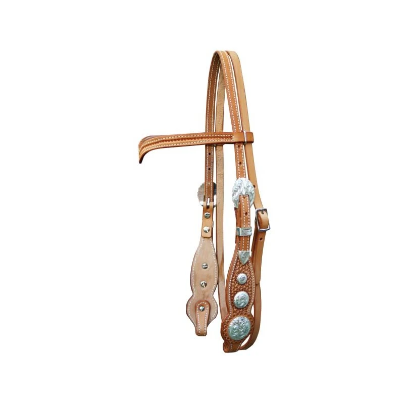 Die ultimative Westerntrense für einen glänzenden Auftritt in der Show-Arena ! Glamouröses Kopfstück mit edlen Conchas und Basket Verzierung am Backenstück. Das Westernkopfstück ist verstellbar und somit für alle im Westerntyp stehende Pferde geeignet.