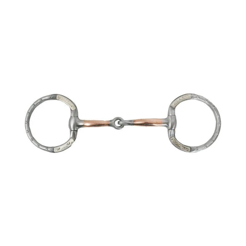 Wundervoll verarbeitetes Show Snaffle Bit in einem tollen Design mit aufwändigen Verzierungen und German Silber Beschlägen auf den Ringen. Kupfereinlage im Gebiss sorgen dafür das die Pferde das Snaffle Bit gerne annehmen.
