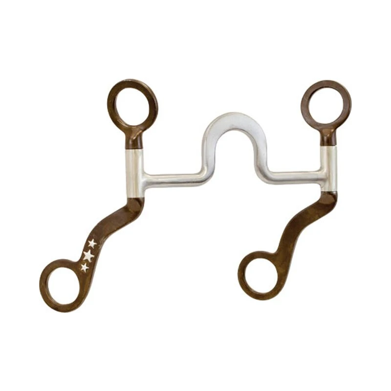 Jonathan Gauthier Spoon Bit. Spoon Bit für Training und Show! Auf den braunen Shanks sind silberfarbene Sterne eingearbeitet. Das Antike Spoon Bit hat Kupfereinlagen im Mundstück eingearbeitet.