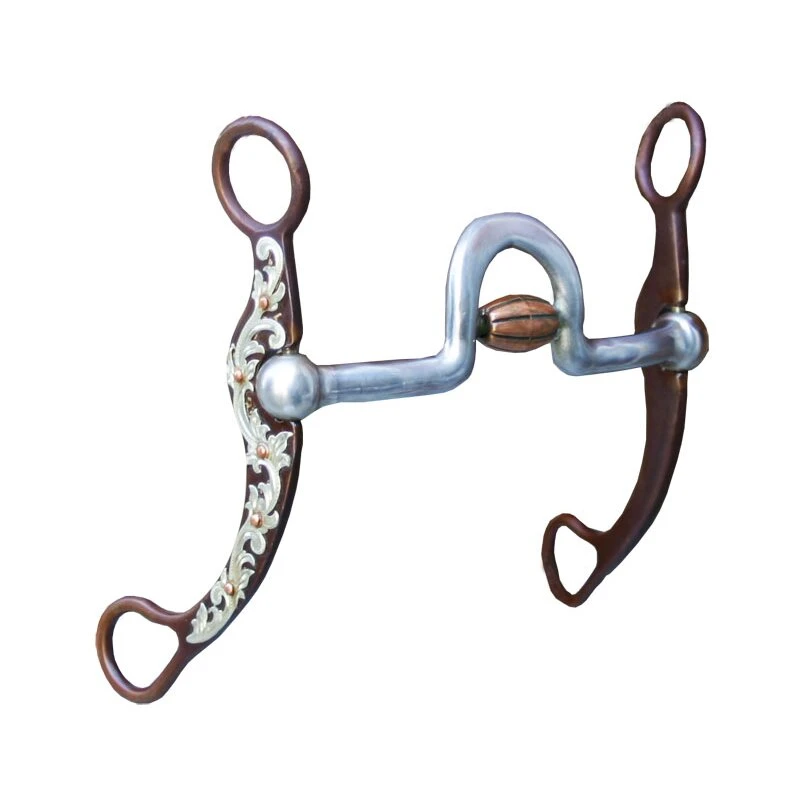 Das High Port Bit, eine Western Kandare der Extraklasse mit flachem Löffel und Rolle. Die wunderschönen Blumenmuster an den Shanks machen das Bit zu einem echten Blickfang. Durch den braunen Edelstahl wird das German Silber Dekor optisch hervorgehoben. Mit diesem Gebiss kann das nächste Western-Turnier starten !