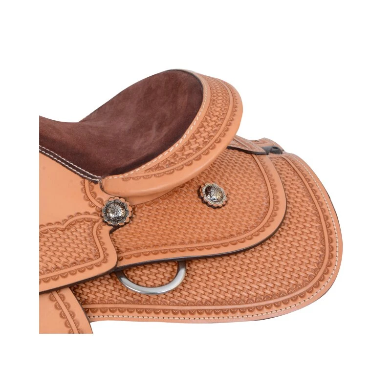 Super schicker und bequemer Westernsattel für Kinder! Der Kinder-Westernsattel eignet sich für Freizeit und Turnier. Der Kinder-Western-Sattel hat ein wunderschönes Basketmuster, was den Sattel optisch zu einem Highlight macht. Der Kindersattel hat eine 13″ Sitzfläche und ist somit für Kinder bestens geeignet. Der Kindersattel ist in verschiedenen Farben erhältlich.