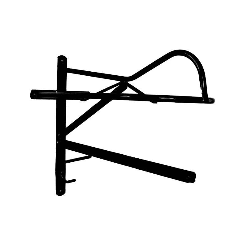 Sattelhalter der nicht nur den Sattel platzsparend an der Wand verstaut. Das Pad wird einfach durch die Stange darunter geschoben und die Trense am Trensenhaken eingehängt.