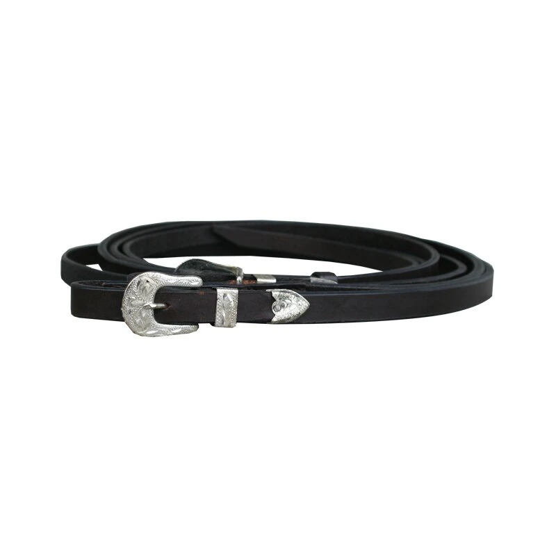 Sehr schöneShow-Leder-Zügel aus US Rindsleder. Das Highlight der Show-Zügel sind die silbernen Schnallenverschlüsse, die dem Turnier-Outfit noch den letzten Schliff geben.